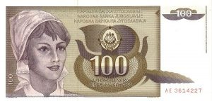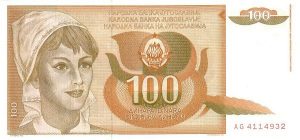 Yugoslavia P-108 / 100 Dinara 1991 – UNC