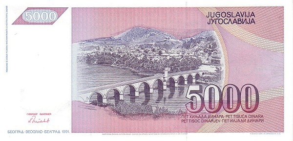 Yugoslavia P-111 / 5,000 Dinara 1991 – UNC