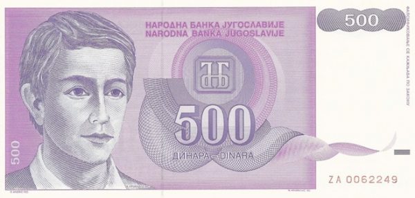 Yugoslavia P-113r / 500 Dinara 1992 – UNC (replacement note)