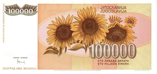 Yugoslavia P-118 / 100,000 Dinara 1993 – UNC