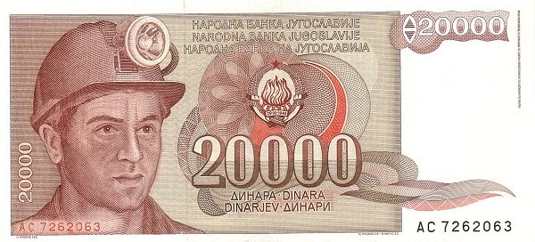 Yugoslavia P 95 / 20,000 Dinara 1987 – UNC