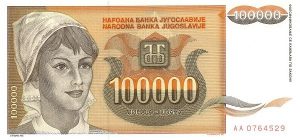 Yugoslavia P-118 / 100,000 Dinara 1993 – UNC